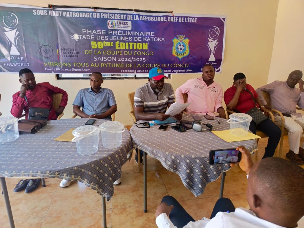 La Ligue de football du Kasaï occidental (LIFKOC) a procédé, mardi 15 avril 2025, au tirage au sort des préliminaires de la 59e édition de la Coupe du Congo, rebaptisée « Coupe du Président », au cours d’un point de presse tenu à l’hôtel Med 1, à Kananga.